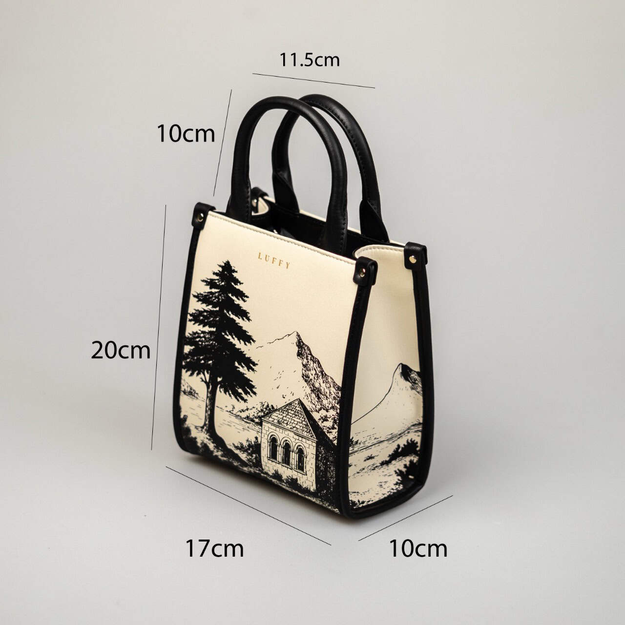 What makes this bag truly special is its artistic front panel – a printed illustration inspired by Lebanon’s breathtaking mountains, the iconic cedar tree, and traditional Lebanese architecture.