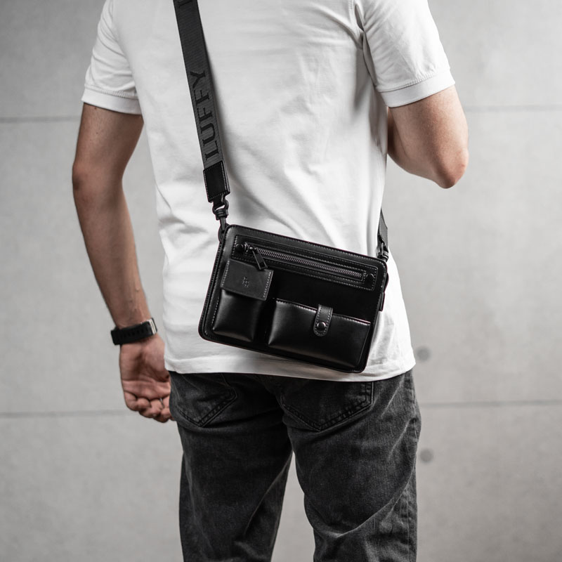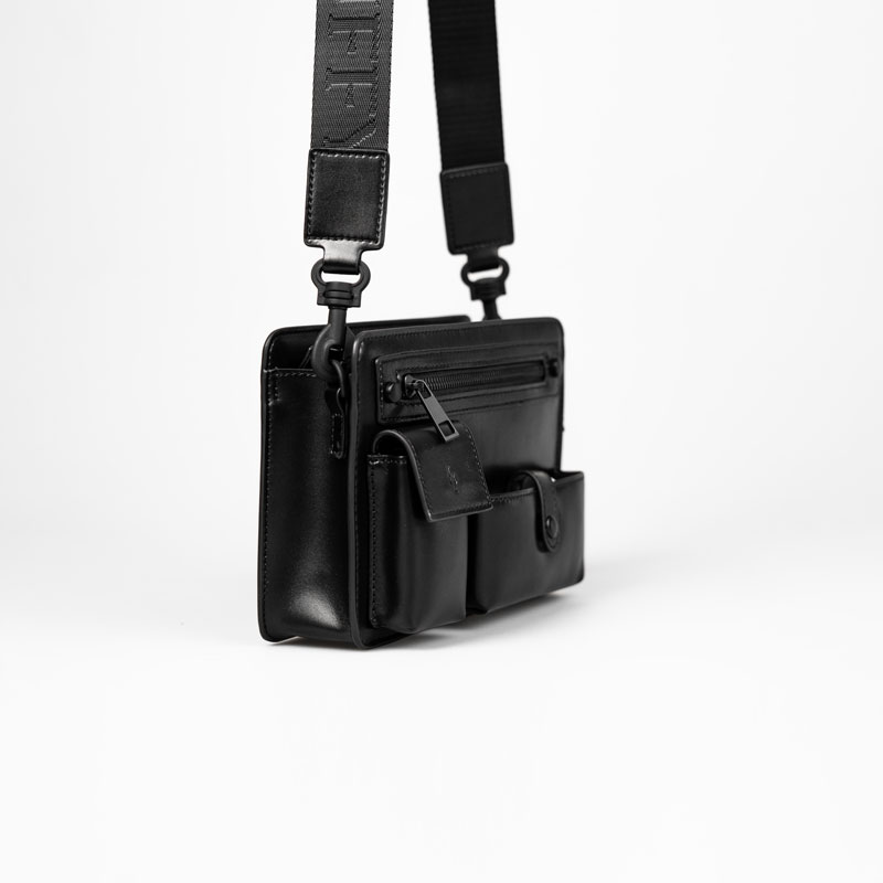 On the front, two functional pouches provide smart organization: one tailored to fit all IQOS device sizes, and the other designed for HEETS packs. An adjustable premium fabric strap with leather details ensures comfort and a sophisticated look.