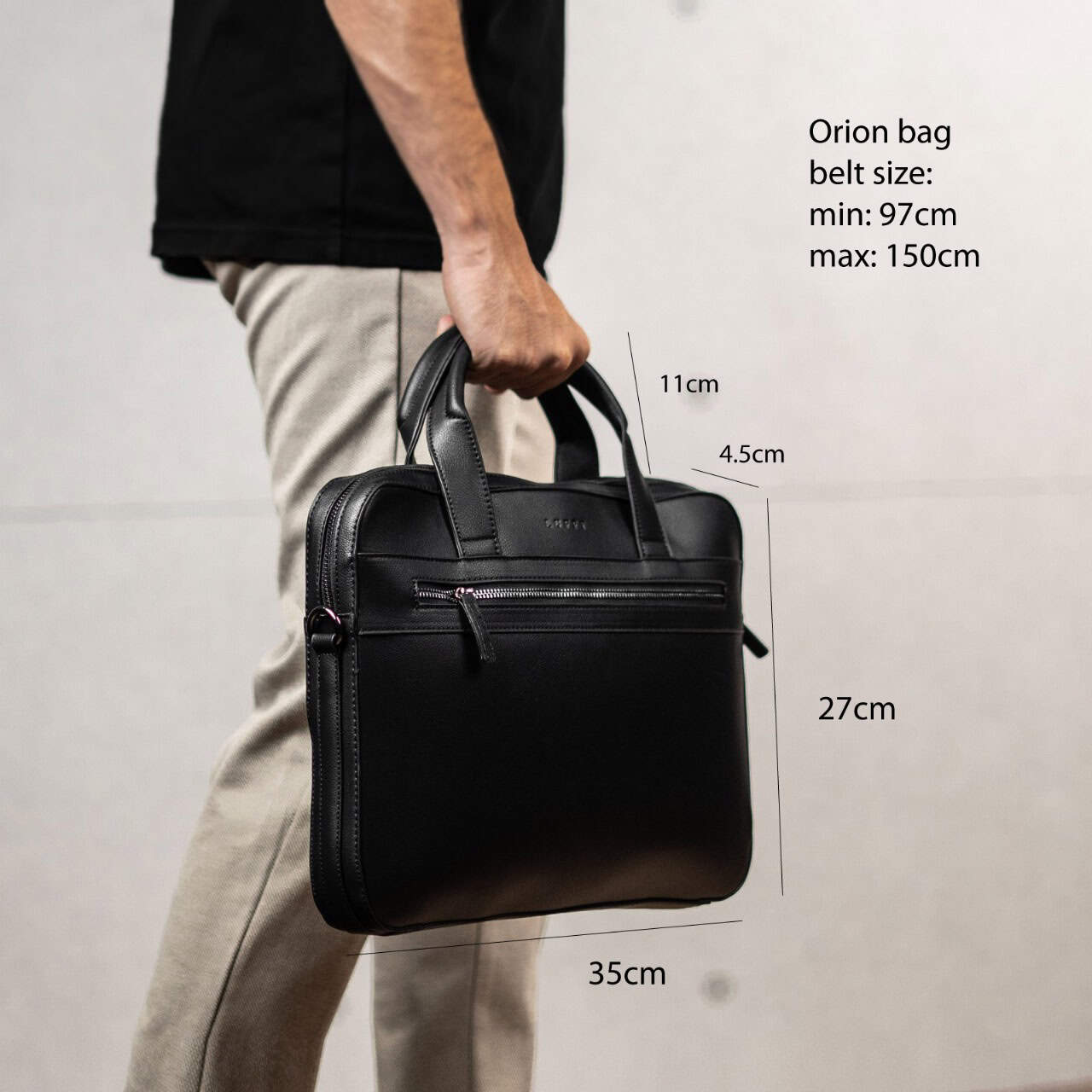 مصنوعة من الجلد النباتي الفاخر، تجمع حقيبة Orion بين التصميم العصري والفخامة العملية. مناسبة للابتوبات حتى مقاس 14 إنش، بقياس 35 سم عرض × 27 سم ارتفاع × 4.5 سم سماكة – حجم أنيق وواسع في الوقت نفسه.