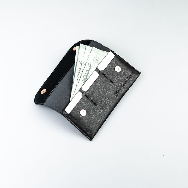 The Vardan Long Wallet is crafted from luxurious Italian microfiber leather. It is designed to hold cash with three card slots and a magnetic closure for added security. The wallet is available in more than four colors, offering both style and functionality.